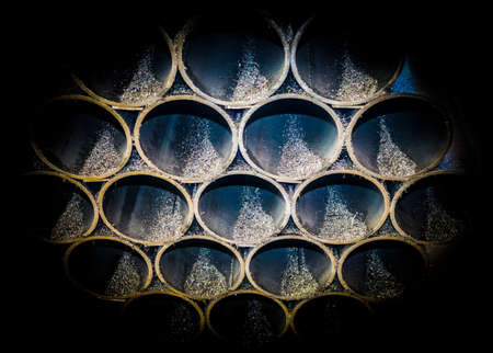 Light shining through Construction pipes all stacked together to create abstract image