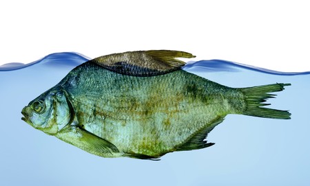 Dry fish in water isolated on white background
