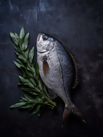 Uncooked fresh gilthead on black surface