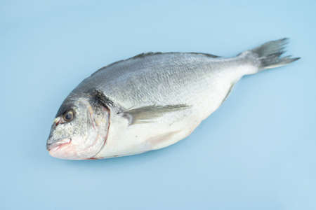 Dorado fish lies on a blue background