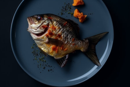 meal fresh fish seafood dinner raw healthy food smoked background restaurant. Generative AI.