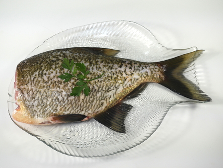 fresh fish carp on white plate