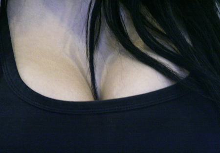 black short sweater with neckline female breast.