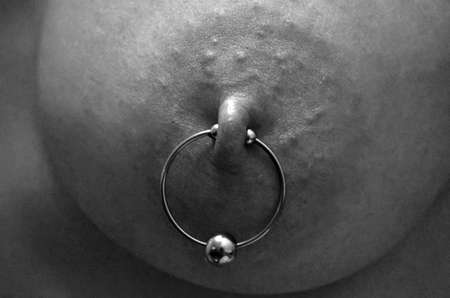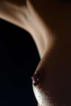 armpit with pierced breast on black background