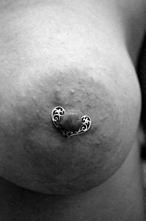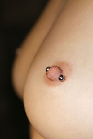 Close up of Caucasian female young adult breast with pierced nipple.