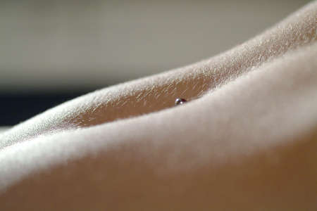a part of a female belly with a piercing