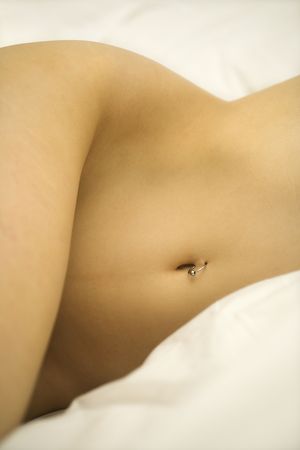 Caucasian female body with pierced belly button.