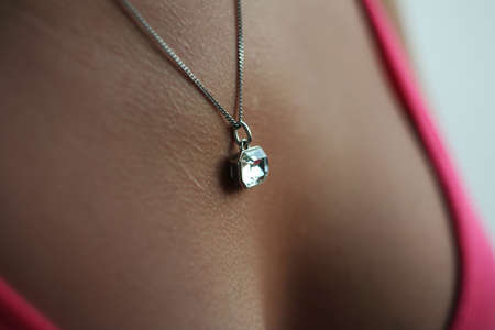 decollete, barenecked, low-necked. female decollete with beautiful breast cleavage.