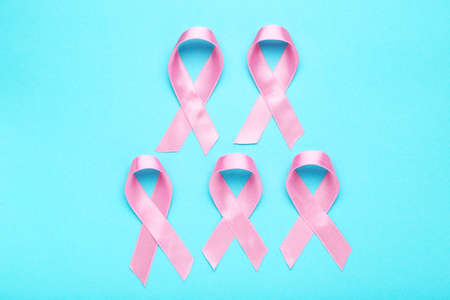 Pink ribbons on pastel background, Symbol of women's breast cancer awareness, Health care and medical concept.