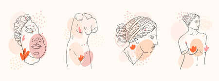 Vector set of antique woman sculptures. Minimal card with antique statues. Contemporary continuous line drawing with greek girl woman.