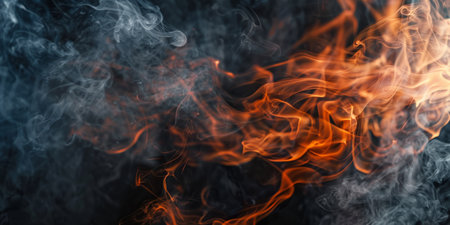 An extraordinary artistic blend of vibrant flames and swirling smoke beautifully showcasing dynamic movement and color