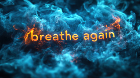 A breathe smoke fire flame blue orange world no tobacco day concept with glowing text in smoky background