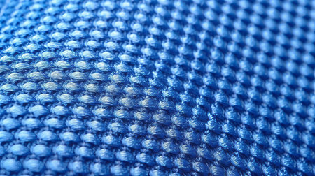 Blue sports fabric texture background for a football or soccer jersey with a mesh pattern, in a flat lay top view copy space. an award winning detailed shot of the texture,
