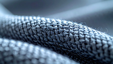 A macro perspective reveals the intricate world within a simple piece of blue-grey fabric. Each interwoven thread tells a story of strength and durability, creating a textured landscape that is both rugged and comforting. This detailed surface provides a perfect neutral background for concepts of quality, craftsmanship, and timeless design.