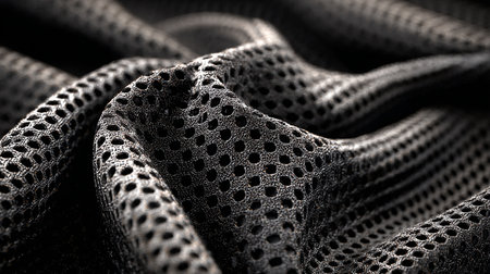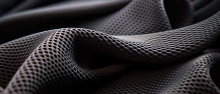 A sporty Lycra fabric texture background in jet black. The stretchy, high-performance material with a smooth finish is perfect for athletic wear, dance costumes, and futuristic fashion designs.