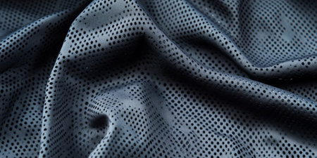 A perforated neoprene fabric texture background in sleek gunmetal gray. The breathable, flexible material has a high-tech, athletic appeal, making it ideal for sportswear, futuristic designs, and modern industrial aesthetics.
