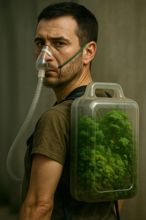 A man laying in bed with an oxygen tube in his mouth. Generative AI image.