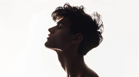Silhouette portrait of young man in profile isolated white background, Generate Ai