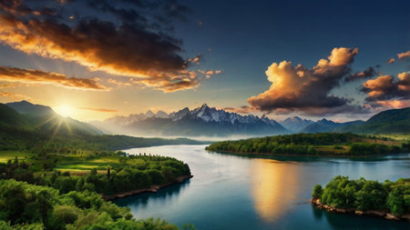 beautiful landscape with river and mountains