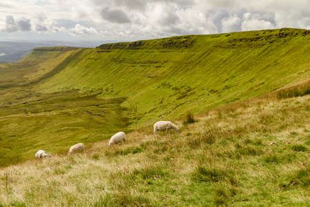 Rugged terrain and landscape of the Brecon Beacons in Wales (Fan Hir and Llwyn y fan fawr)