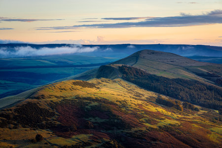 View of Mam tor in Peak district, an upland area in England at the southern end of the Pennines, UK