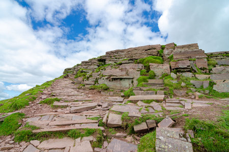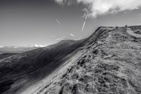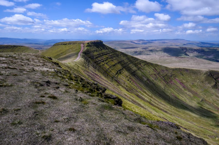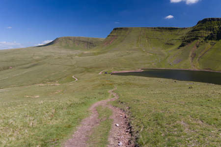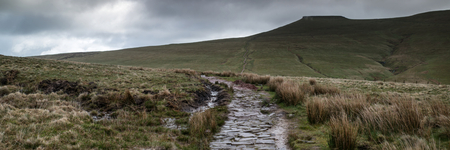 Panorama landscape of footpath leading towards Corn Du mountain in Brecon beacons