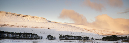 Snow covered Brecon Beacons mountains in South Wales, UK showing the twin summits of Penyfan and Corn Du