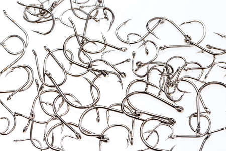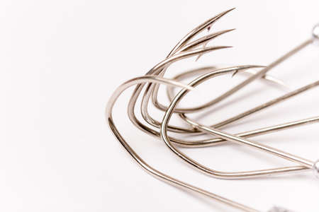 fishing hooks macro close up on white