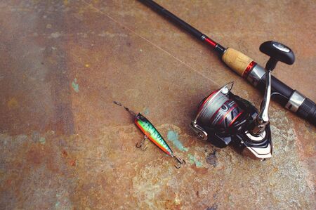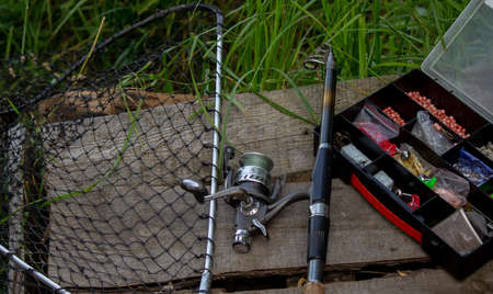 Fishing equipment. Sport and recreation concept.