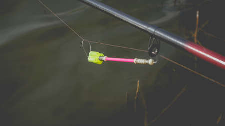 Close-up photo of the rod bite alarm. Stylized photo with vignetting.