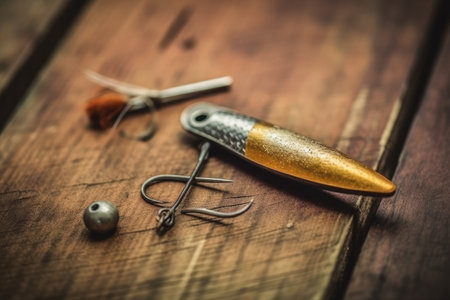 stock close up photo of fishing tool flat lay AI Generated