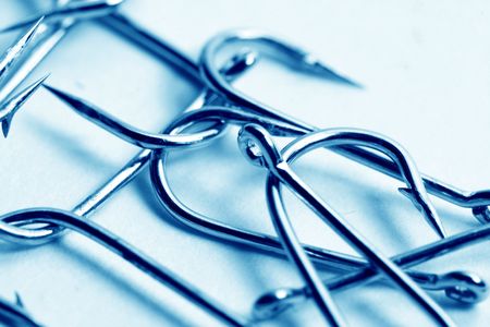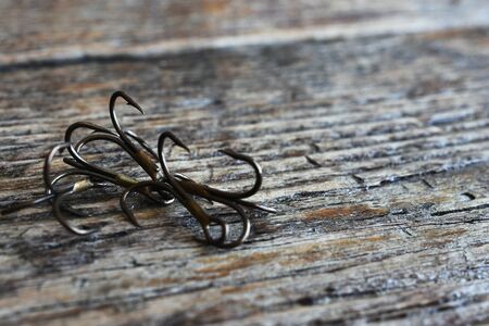 Sharp fish hooks photographed closeup. Sharpened the hook will not give a chance to fish to escape from the fisherman.