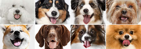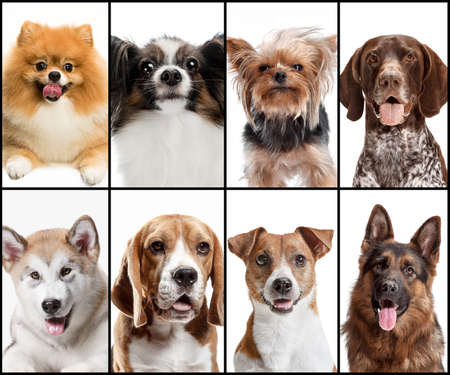 Portrait collection of different dog breeds