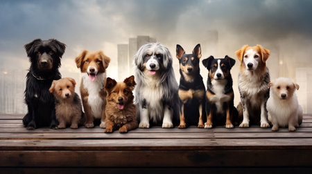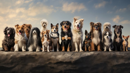 a variety of dogs from different breeds in one frame, created with generative ai