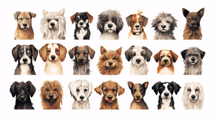 Variety of dogs closely grouped together. Dogs pattern. Generative AI illustration
