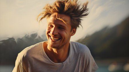 Sunshine Glow: Handsome Caucasian Man with Stunning Hair
