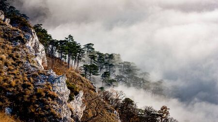 Cliff surrounded by a pine forest, Hereña, Erriberagoitia, Araba - Alava, Basque Country.