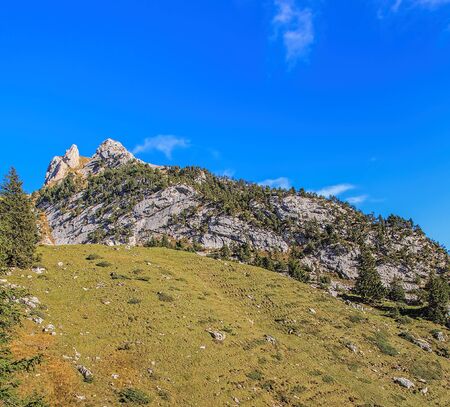 Alpine peak of Risetestock in the Swiss mountain range of Pilatus and in the Emmental Alps, Alpnach - Canton of Obwalden, Switzerland (Kanton Obwald, Schweiz)