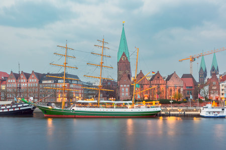 Bremen, Germany, January, 2019 - The main square of Bremen near the Schnoorviertel at the evening