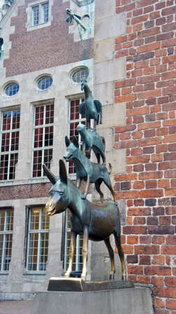 BREMEN, GERMANY - 10 OCTOBER 2017: Famous statue of the four Bremen musicians on the market place, Germany, created by Gerhard Marcks in 1953.