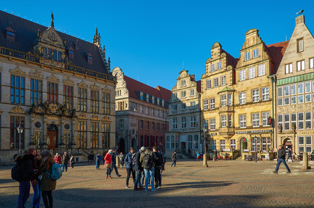 Germany. Bremen. Ancient houses on the Market Square in Bremen. February 14, 2018