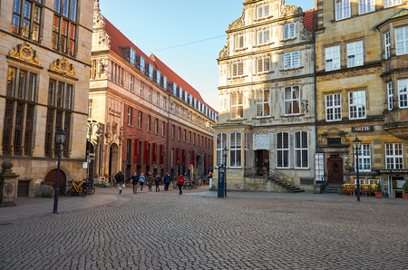 BREMEN, GERMANY, AUGUST 30, 2016: People are walking through the am markt square in the center of Bremen, Germany.
