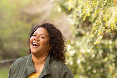 Beautiful mature African American woman smiling and laughing.