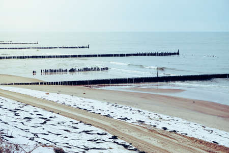 Groynes on a shore, Baltic Sea, Poland
