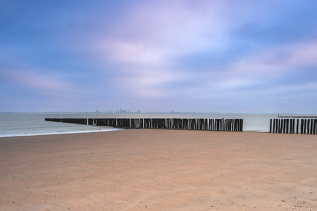 beautiful ocean view with wave breakers on the beach of Breskens, Zeeland, The Netherlands