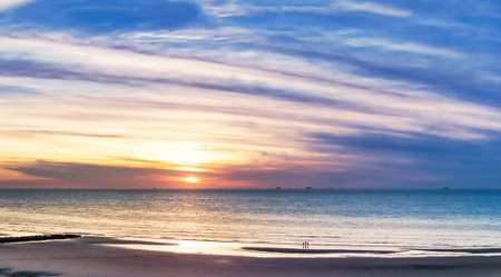 Beautiful and colorful sunset sky over the North Sea, Holland
