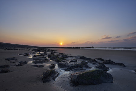 Coast of Breskens during sunrise, Zeeland, The Netherlands.