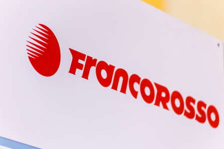 LUGO (RA), ITALY – SEPTEMBER 11, 2018: Dust and dirt covering the FRANCOROSSO logo on signboard