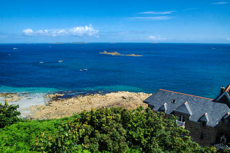 Landscape of the Brittany coast in the Cape Frehel region with its beaches, rocks and cliffs in summer.