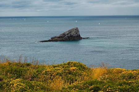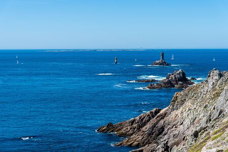 Rocky coast of France over the Atlantic Ocean, sea landscape. Pen hir in France.